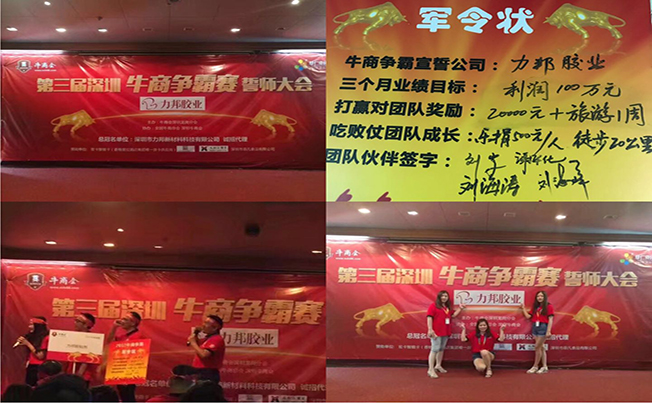 3個(gè)月的點(diǎn)點(diǎn)滴滴誓師大會(huì)目標(biāo)業(yè)績(jī)的開始,深圳市力邦新材料科技有限公司目標(biāo)業(yè)績(jī)是利潤(rùn)100萬。感謝牛商會(huì)舉辦這么具備正能量的比賽,這不僅僅是戰(zhàn)隊(duì)間的比賽,企業(yè)間的比賽,還是企業(yè)自己跟自己的比賽!