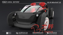 2014年10月29日,在芝加哥舉行的國際制造技術展覽會上,美國亞利桑那州的Local Motors汽車公司現(xiàn)場演 示世界上第一款3D打印電動汽車的制造過程。這款電動汽車名為“Strati”,整個制造過程僅用了45個小時。Strati采用一體成型車身,最大速度可達到每小時40英里(約合每小時64公里),一次充電可行駛120到150英里(約合190到240公里)。Strati只有49個零部件,動力傳動系統(tǒng)、懸架、電池、輪胎、車輪、線路、電動馬達和擋風玻璃采用傳統(tǒng)技術制造,包括底盤、儀表板、座椅和車身在內(nèi)的余下部件均由3D打印機打印,所用材料為碳纖維增強熱塑性塑料。Strati的車身一體成型,由3D打印機打印,共有212層碳纖維增強熱塑性塑料。辛辛那提公司負責提供制造Strati使用的大幅面增材制造3D打印機,能夠打印3英尺×5英尺×10英尺(約合90厘米×152厘米×305厘米)的零部件。